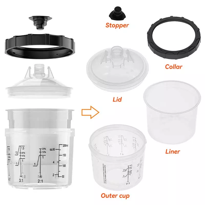 Setiap bahagian AYSPAT 200ML Spray Gun Cup diperbuat daripada plastik, dan kami mempunyai peralatan pengeluaran yang canggih serta proses pengacuan suntikan yang unik dan menjadikan setiap bahagian berfungsi bersama-sama, menghasilkan produk yang sempurna.