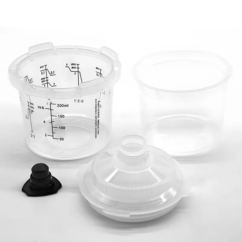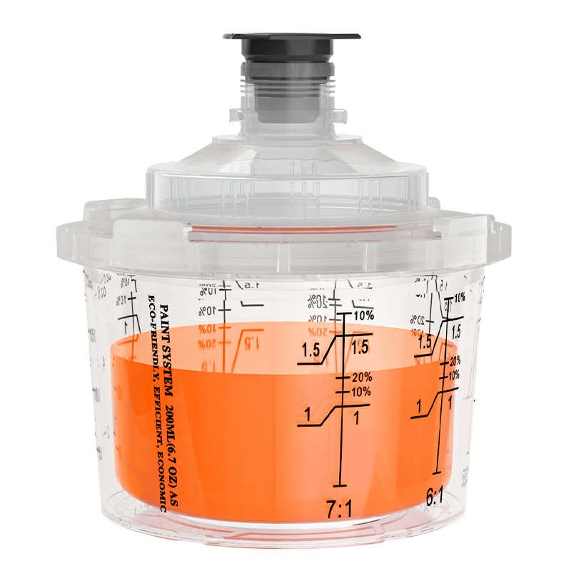 Cawan semburan pakai 200ml adalah sistem cawan cat pakai buang yang direka untuk pembaikan 1 panel, ia sesuai untuk kawasan yang memerlukan 6.8 fl oz (200 ml) atau kurang material.Ia telah menaik taraf reka bentuk cawan luar berdasarkan siri AYS1.0. Kunci cawan luar bersepadu tanpa bahagian kolar, yang menjadikan pemasangan dan pembongkaran cawan semburan lebih mudah; Sistem Piala Cat AYS3.1 Series adalah cawan pistol semburan Ayspat Newst, yang meningkatkan kecekapan dan kualiti keseluruhan proses pencampuran cat, penyemburan dan penyimpanan.