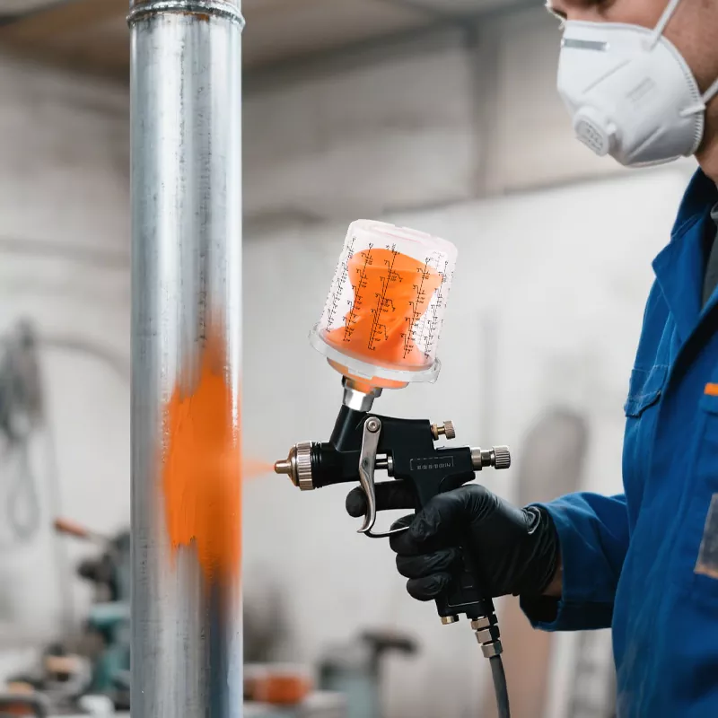Cawan pistol semburan pakai Ayspat diperbuat daripada bahan PE dan PP yang tahan kimia. Ia dapat menahan pelarut yang kuat (seperti xilena dan aseton) selama 48 jam tanpa pembengkakan, memastikan operasi yang selamat dalam tempoh yang panjang. Ini menjadikannya pilihan yang sangat baik untuk menyembur primer kaya zink epoksi dan topcoat poliuretana pada struktur keluli, saluran paip, dan tangki simpanan.
