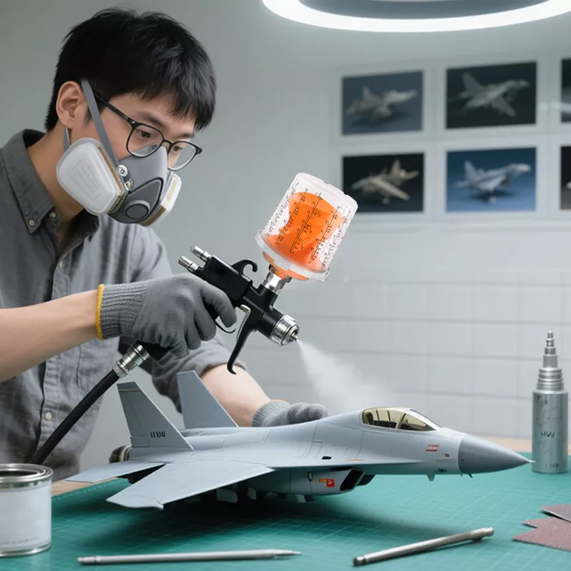 Cawan semburan pakai 200ml adalah ringan dan mudah. Ciri perubahan warna cepat sempurna untuk mewujudkan kesan kecerunan pelbagai warna apabila model lukisan. Cawan semburan pakai Ayspat sesuai untuk lukisan terperinci model, seperti model ketenteraan, angka GK, dan mural.