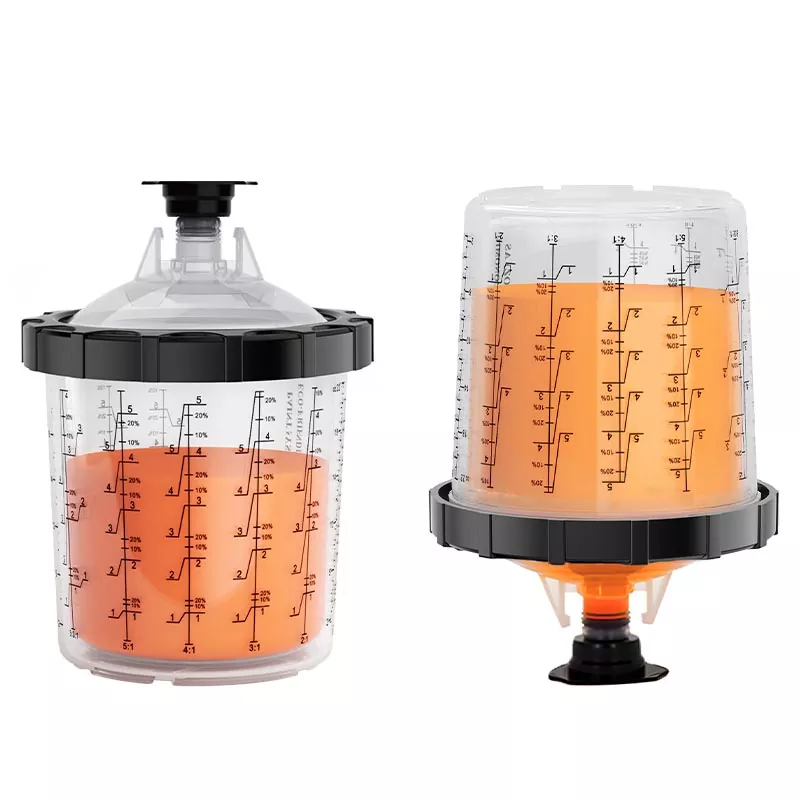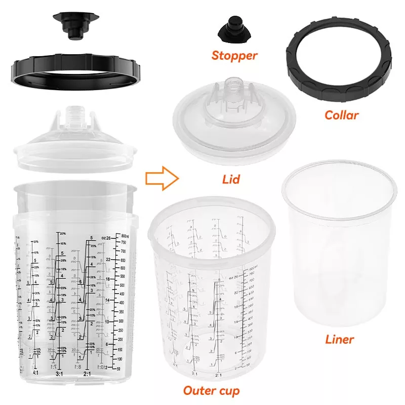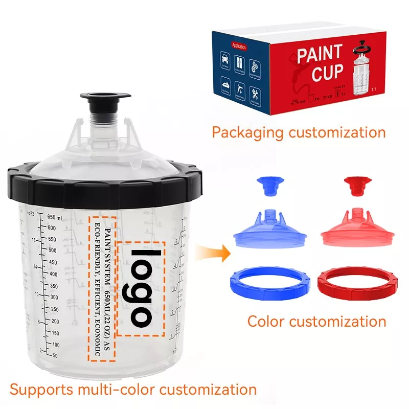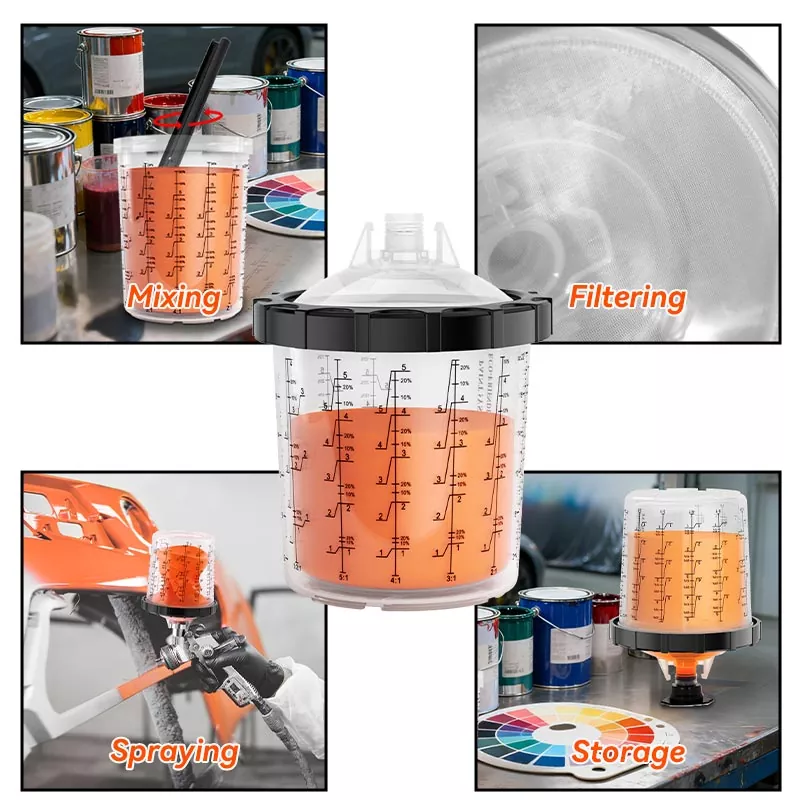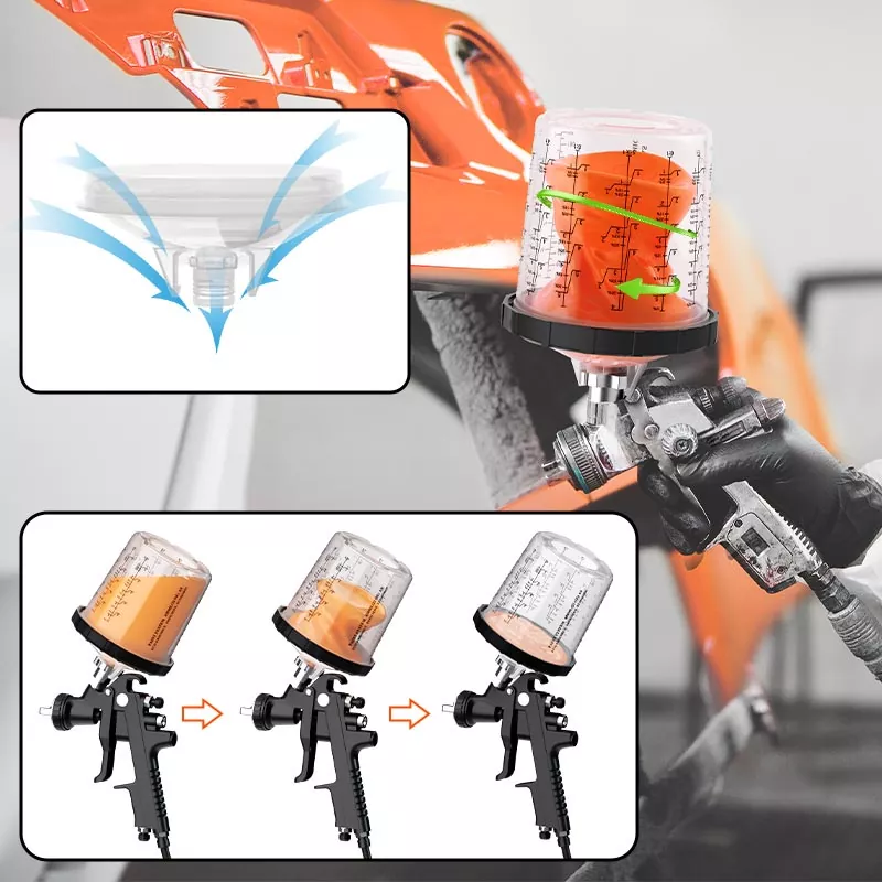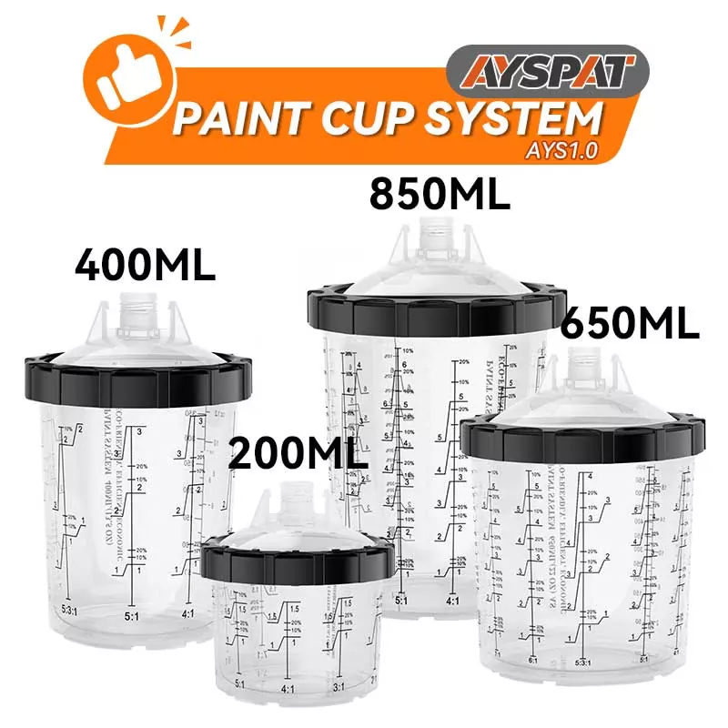 Sistem Cawan Cat Pakai 800ML 1.0 memuatkan 28.5 fl oz (850 ml) cat ,ia sesuai untuk Pembaikan 4 Panel atau kurang daripada bahan,termasuk kelompok salutan yang besar dan jelas. Rangkaian ini telah dibangunkan untuk meningkatkan kecekapan kerja dan kualiti semburan untuk memenuhi jangkaan setiap pelukis. Sistem penyemburan semburan boleh guna untuk cawan semula yang sangat baik. lebih bersih dan lebih cekap. Cat boleh dicampur terus dalam cawan semburan, dan hanya pembersihan minimum diperlukan selepas setiap penggunaan. Jika anda ingin memborong cawan pistol semburan pakai buang, sila hubungi kami untuk mendapatkan sampel percuma untuk ujian.