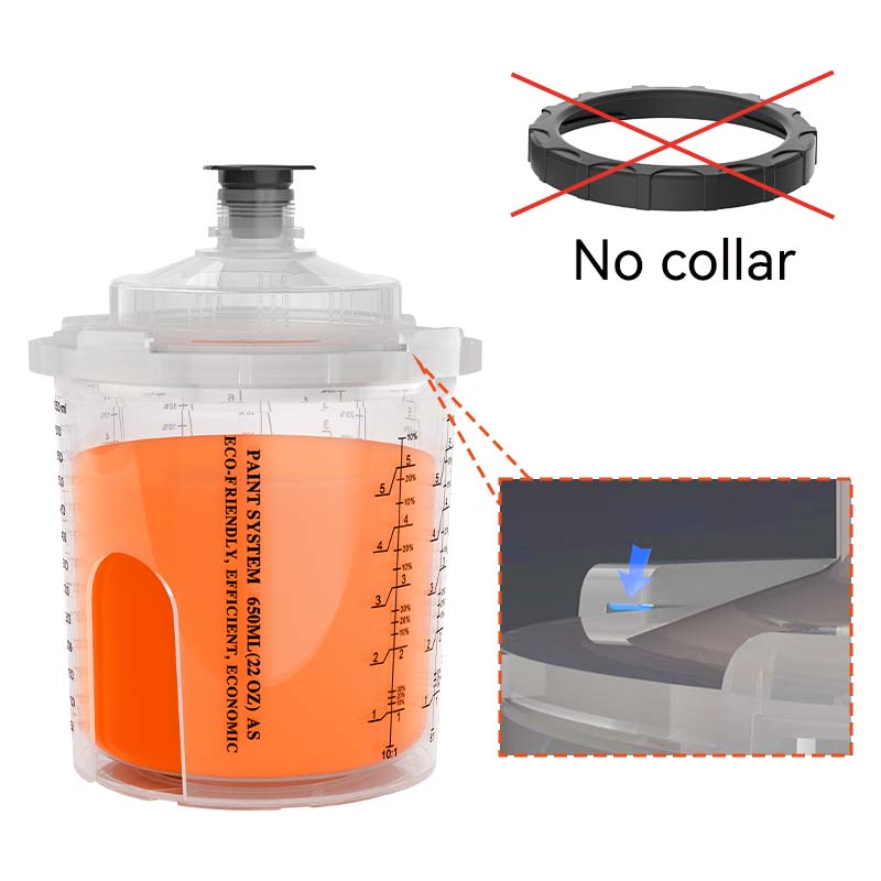 Kolar, yang membentuk sambungan yang ketat antara cawan dan tudung, telah lama menjadi komponen penting dalam sistem cawan semburan pakai buang. Semasa sesi lukisan yang sibuk, pelukis sering kehilangan atau merosakkan kolar, menghalang cawan semburan pakai buang dari berfungsi dengan betul, mencipta cabaran yang ketara.