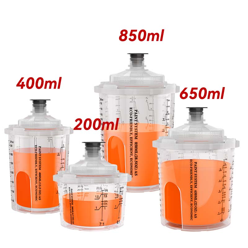 - AYS3.1cawan semburan pakai buangdiperbuat daripada bahan-bahan PP dan PE yang tahan pelarut dan tahan. Ia menyokong pelbagai lapisan, termasuk cat lateks, cat berasaskan minyak, dan varnis, dengan berkesan menghapuskan isu-isu kakisan yang biasanya dikaitkan dengan cawan semburan tradisional.